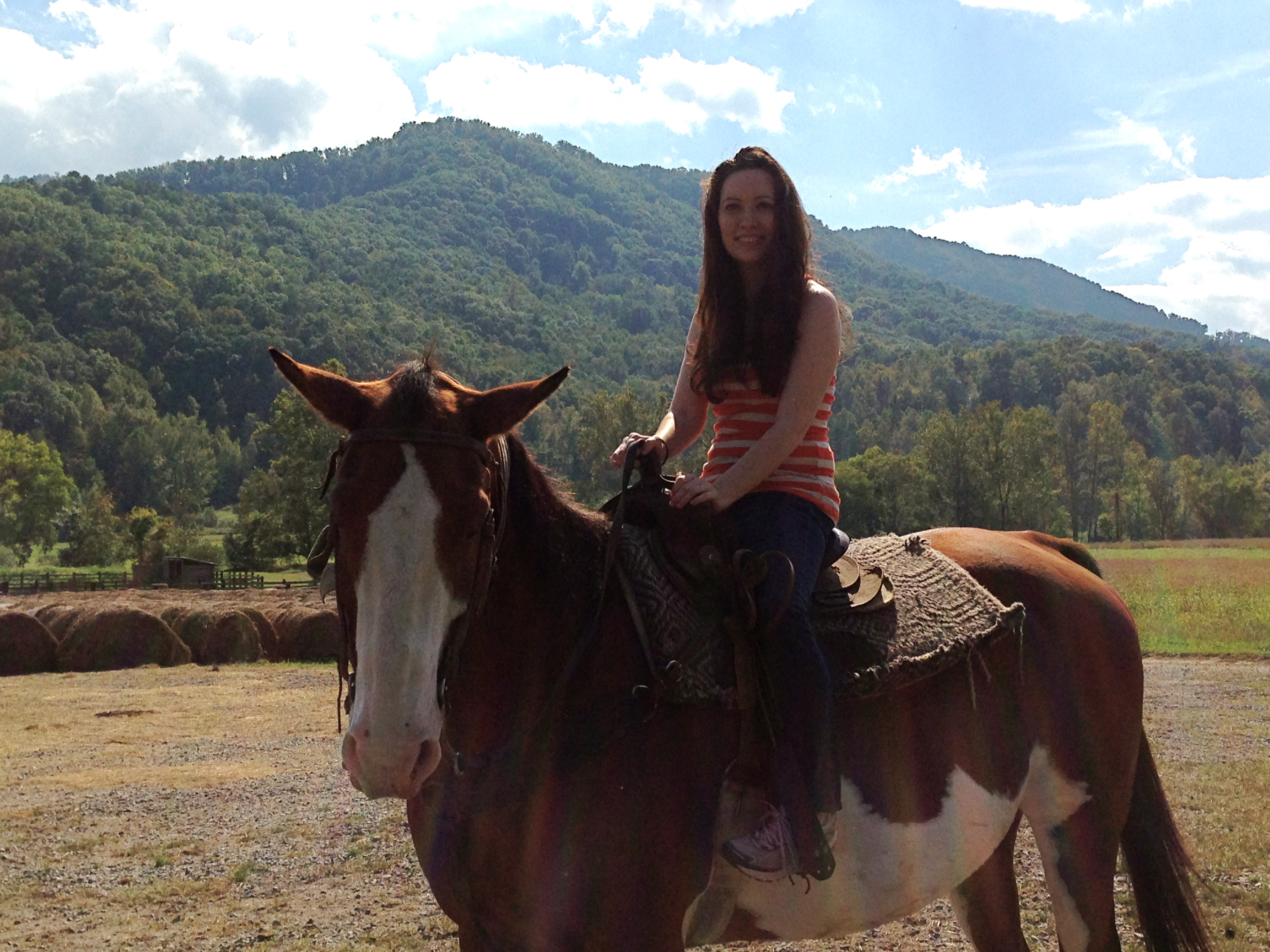 Last weekend I visited Knoxville for an alumni meeting at my law school. I hadn’t seen my friend Amy since I left town so I wanted to have a new adventure with her while I was there. Amy previously accompanied me belly dancing, indoor rock climbing, and hanging upside down from ropes. First, we wanted to go hang gliding but the timing didn’t work out. Next, we thought about hiking in the Great Smoky Mountains National Park but the government has apparently closed nature. Finally, Amy suggested horseback riding.