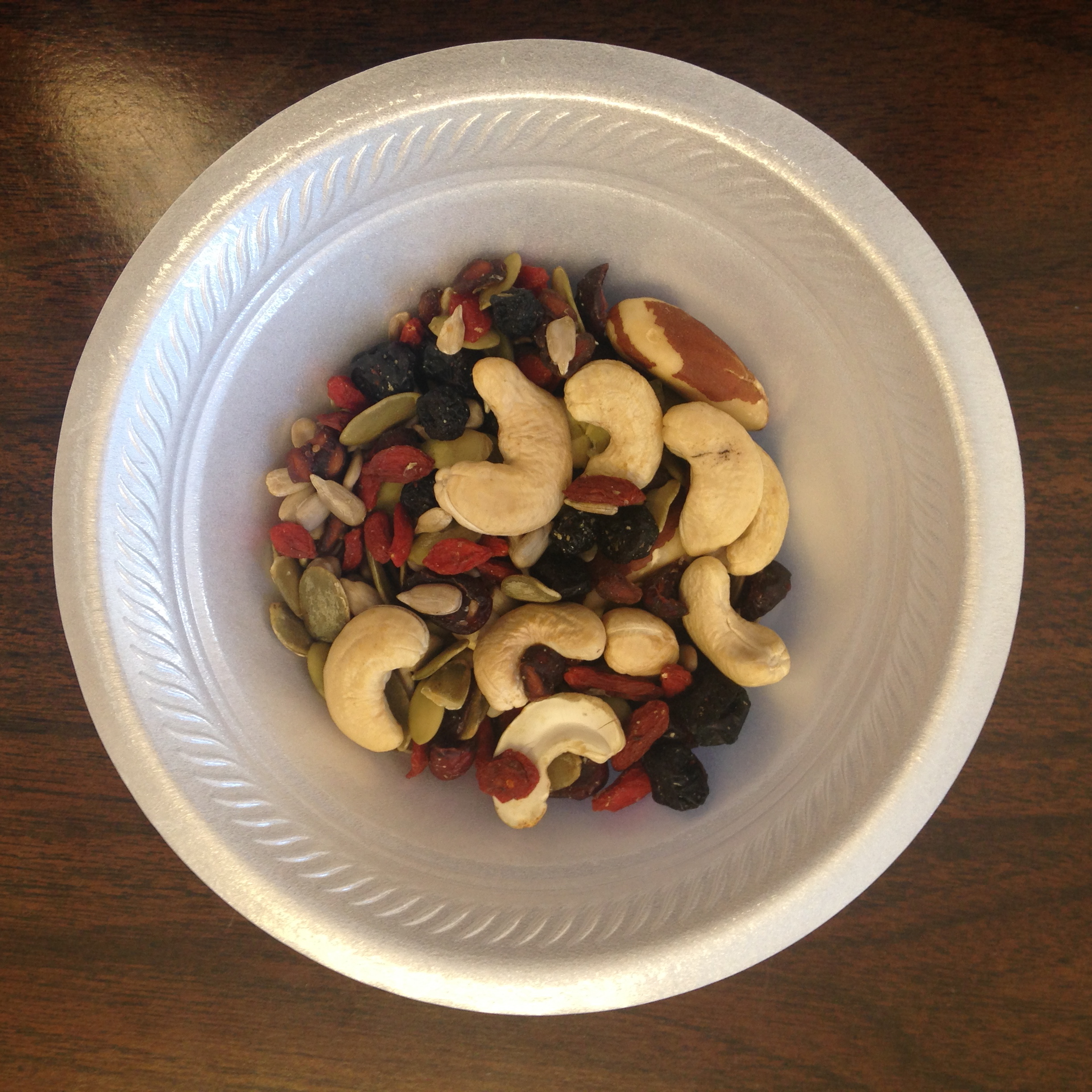 Finally I got to have my mid-day snack, approximately 1 cup of nuts and berries. I’ve never been so excited about trail mix. Halfway through stuffing my face as fast as humanly possible, I realized that I was supposed to have my “snack” after my third drink of the day. Drat! I packed up my trail mix and exchanged it for my lunchtime “Pick Me Up” drink (cucumber, kale, apple, and lime). Not only did it taste like cucumbers, it made my office smell like cucumbers.