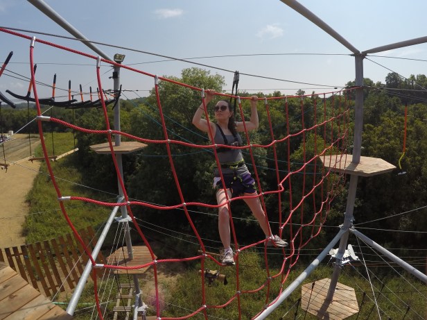 My friend Amy, who has accompanied me on at least 6 prior adventures (the most of which recent being zorbing), drove in from Knoxville to spend the weekend with me. Almost every adventure we’ve had together has required some sort of liability waiver. Amy is good at basically everything, and took to the ropes course much more naturally than I did. (See her exuding awesomeness below).