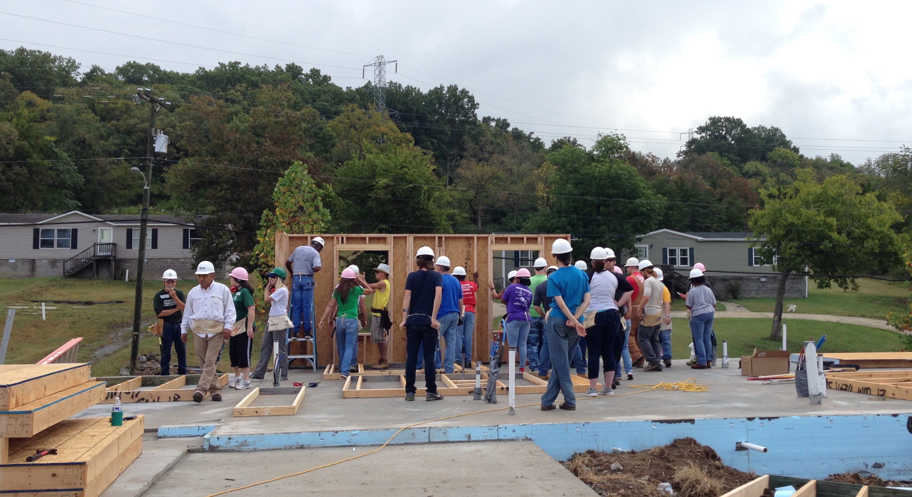 My friend Kimi (from the polar bear plunge adventure) asked me if I would like to accompany her church, West End United Methodist, to a build. This is the 12th year the church has helped to sponsor and build a Habitat home in Nashville. I, of course, jumped at the opportunity. Working with Habitat has been on my To Do List since the very beginning. We showed up on the first day of the build which meant the only thing set up was a concrete slab to get us started.