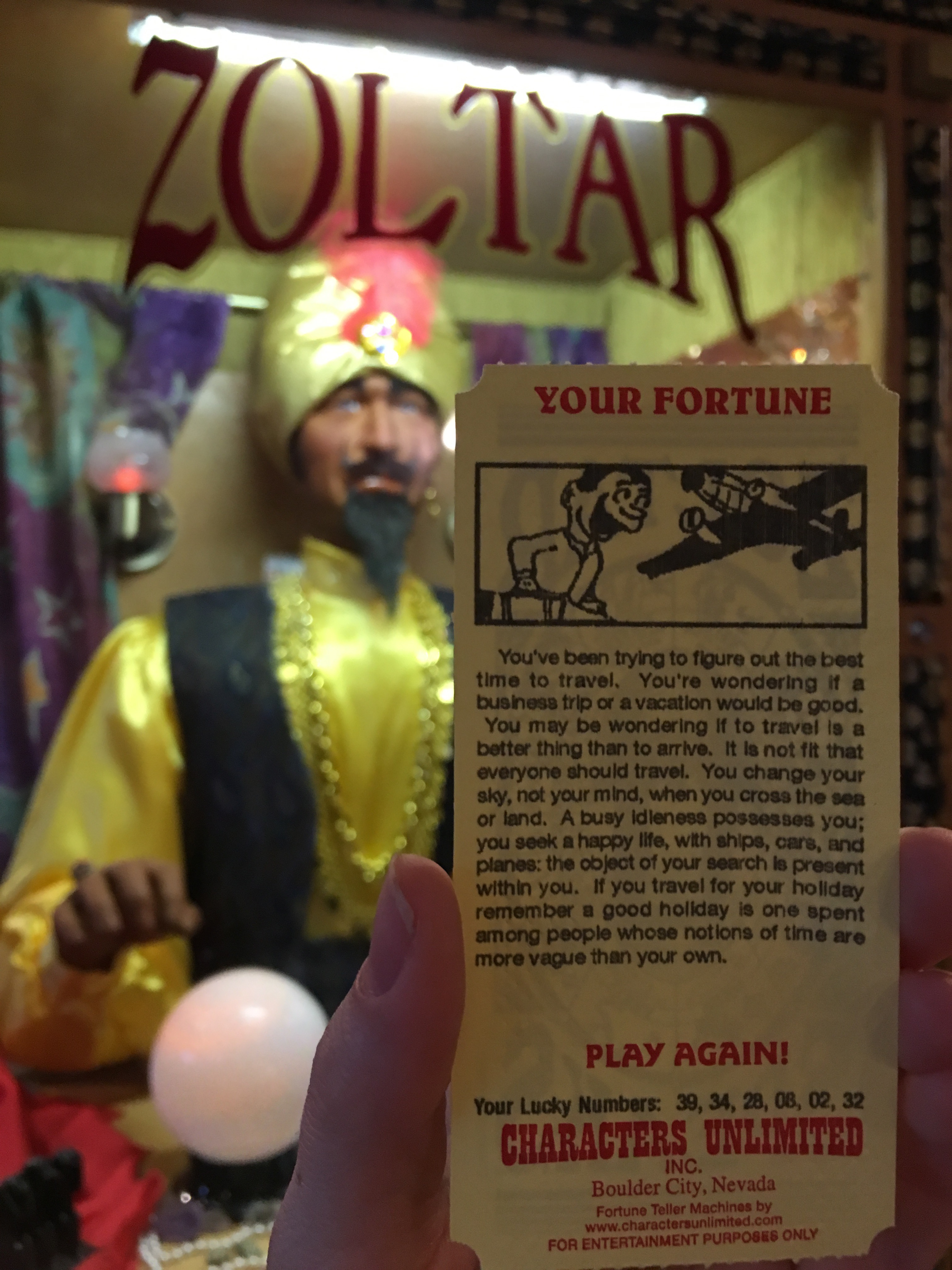 The best part was my psychic reading from Zoltar, who gave the most on point fortune ever told.