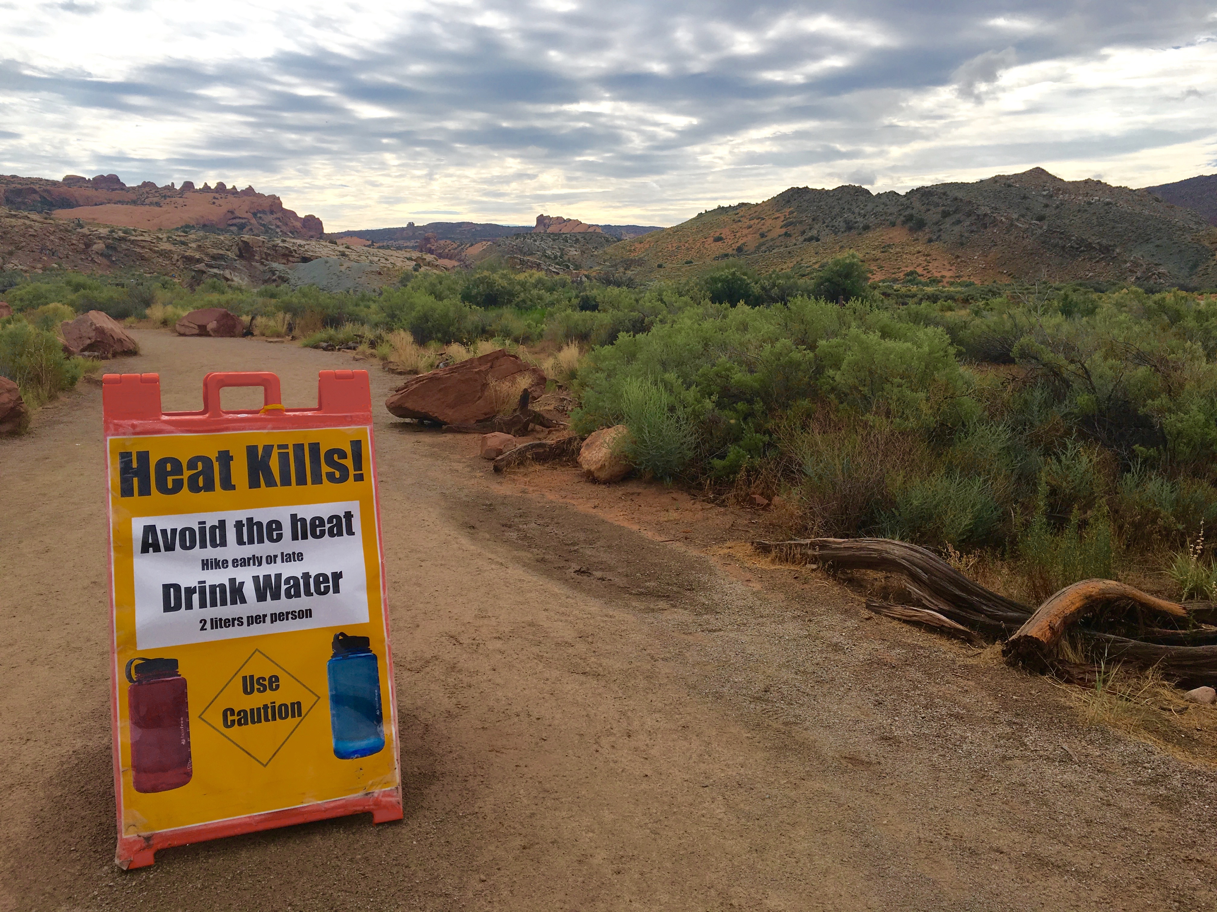 The hike is listed as one of Arches “difficult” hikes and should be done early in the morning and with plenty of water. In fact, two people died on the trail the week we were there.