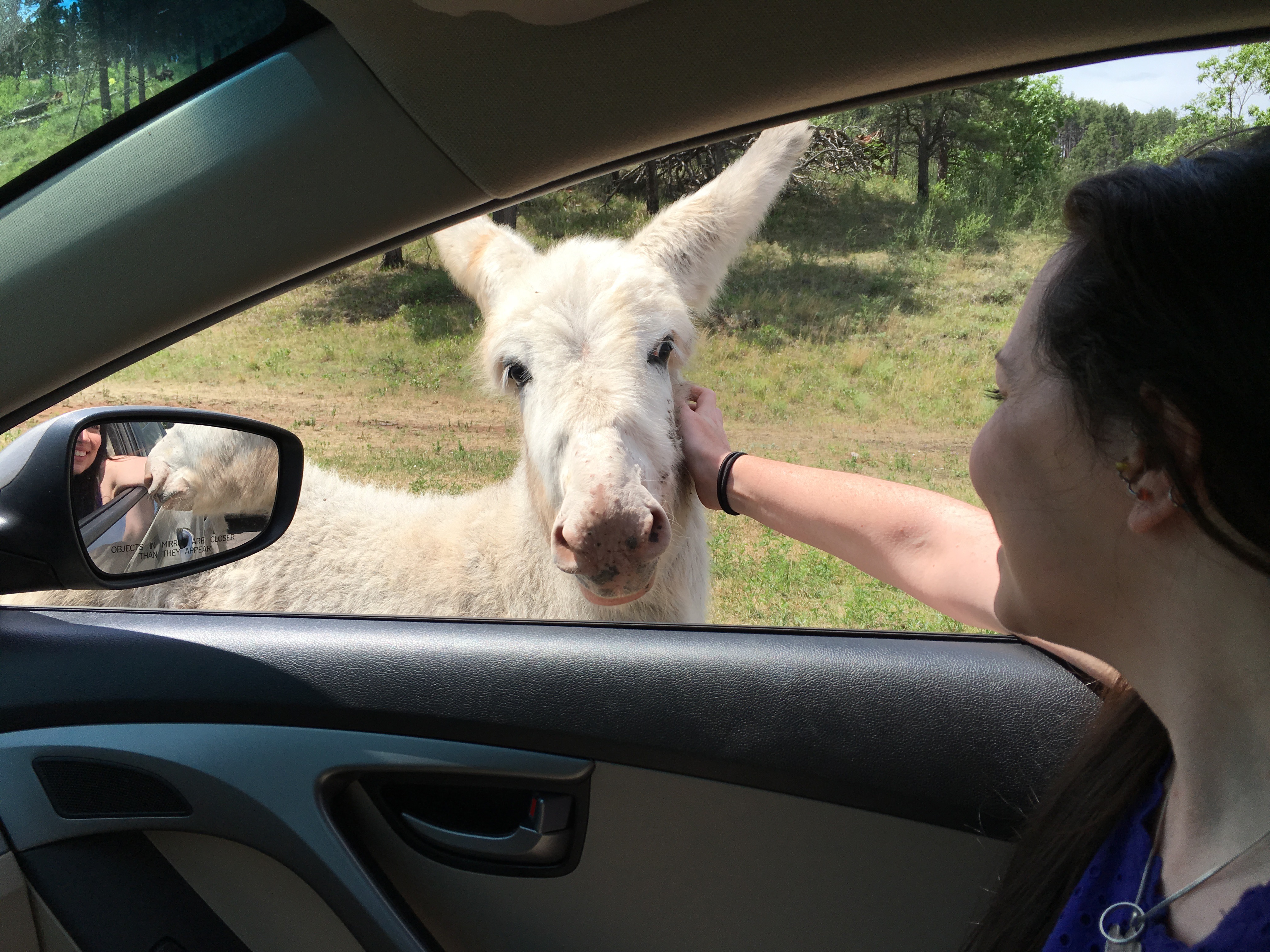 The burros, commonly called “begging burros,” went on a car-to-car hunt looking for treats and some friendly face scratchings.