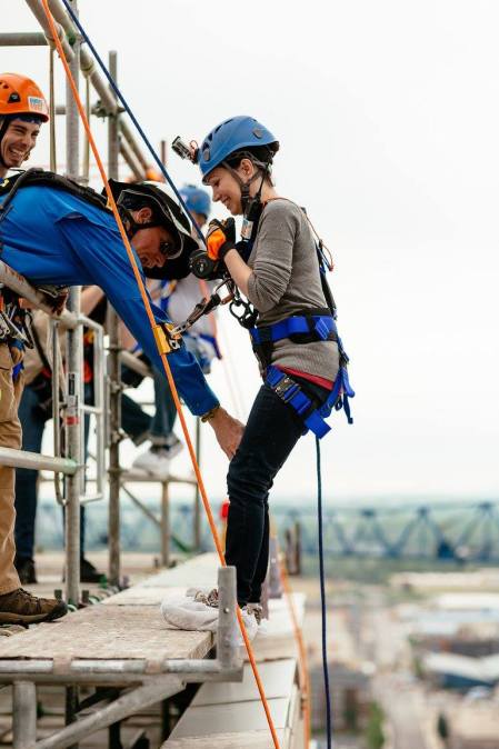 Before I could start my rappel, I had to crawl over some scaffolding to get to the edge of the building. This was surprisingly nerve-wracking considering what I was about to do.