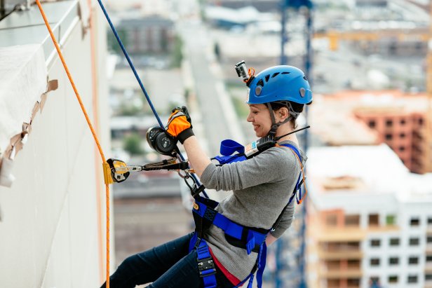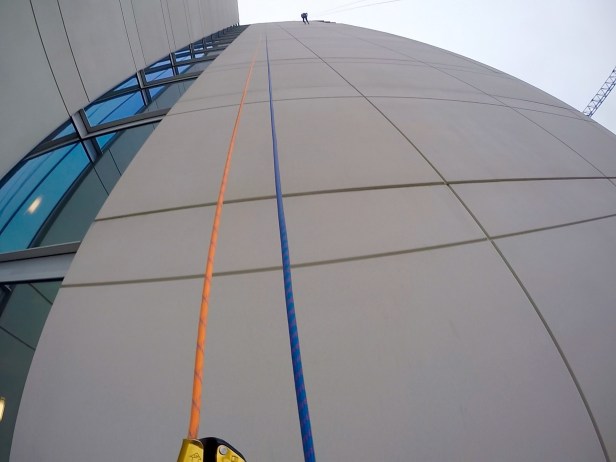 However, the worst part was the first steps going down the building. It was a little hard to get started because, well, I weigh as much as a wet chihuahua. You control the rate of your descent with your weight and guiding rope through the belay. So, my size made it difficult to get horizontal with the wall.