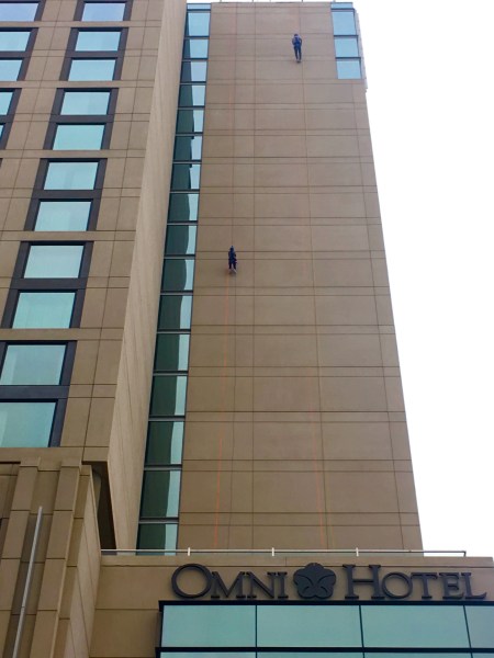 I fed the rope though the belay and I walked myself down the building, taking time to waive at my supporters below and the hotel guests who gathered at the windows to watch.